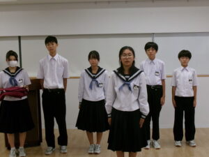 生徒会引継式・委員会 2025年9月29日 に 管理者 が投稿 9月29日(月) 生徒会引継式を行いました。前期生徒会役員の挨拶の後、生徒会旗の引き継ぎ、新役員が挨拶をしました。 前期の最終と後期の最初の委員会も行い、前期の活動を振り返り、後期の活動につなげていきます。