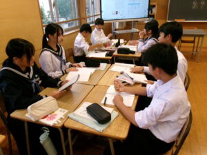 筆者の論の説得力の有無についてグループで話し合いました。互いの考えに共感する様子が見られました。