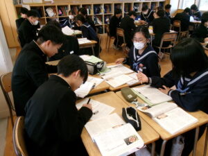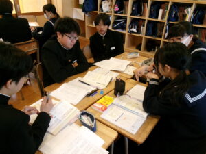 3年生 国語科 論説文の比較 2025年10月24日 に 管理者 が投稿 10月24日(金) 三つの文章を比較し、その適切さや分かりやすさ、有効性等についてグループで話し合いました。授業の後半には話し合った内容を踏まえ、自分の考えをまとめました。