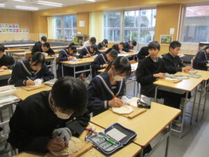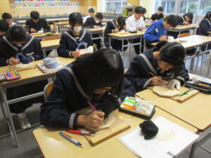 のレリーフを作っています。自分の選んだ彫り方で、集中して