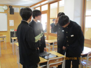 執行委員会 2025年11月6日 に 管理者 が投稿 11月6日(木) 昼休みに執行部と各委員長が集まり、執行委員会を開きました。井波中学校をよりよくするために、どのような生徒会活動をしていくかを話し合いました。