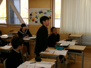 今週の道徳(11月11日) 2025年11月11日 に 管理者 が投稿 ・1年生「ぼくのふるさと」C-(16) 郷土の伝統と文化の尊重、郷土を愛する態度 ・2年生「田老の生徒が伝えたもの」A-(2) 節度、節制 ・3年生「埴生の宿」B-(6) 思いやり、感謝