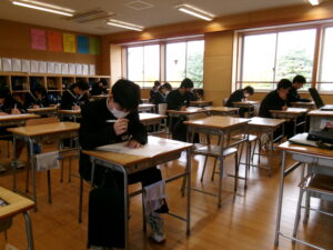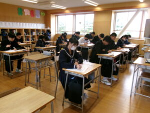 「図形の性質と合同」の単元テストを行いました。時間いっぱい集中して取り組みました。
