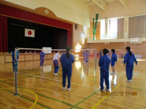 1年生体育 バレーボール 2025年11月12日 に 管理者 が投稿 11月12日(水) バレーボールをしています。今日は、新しいチームになって初めてのゲームを行いました。チーム内で声をかけ合いながら、楽しんで活動していました。