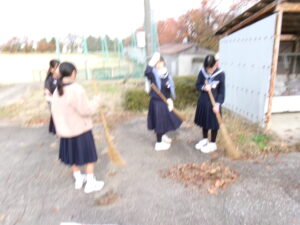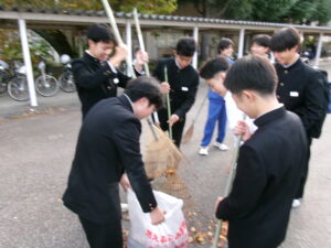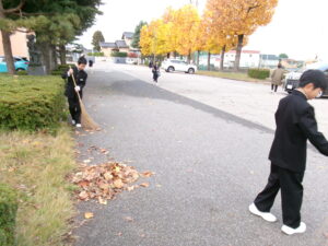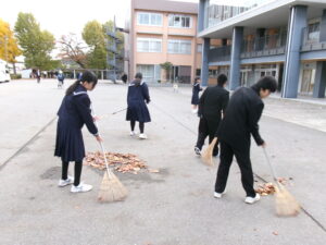 朝、ボランティアで落ち葉掃きをしてくれる生徒がいます。きれいな環境で一日を迎えることができました。