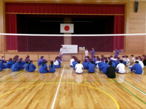 3年生は学年レクリエーションでバレーボールをしました。元気に体を動かしました。