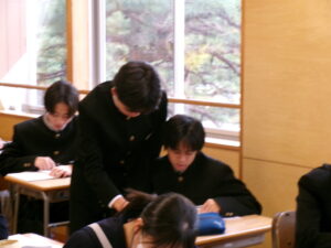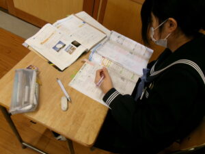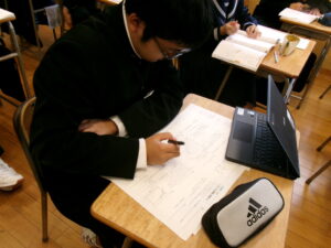 3年生 数学 習熟度学習 2025年11月17日 に 管理者 が投稿 11月14日(金) 習熟度毎に課題を選んで学習しました。ワークブックで基礎基本を定着したり、プリントやタブレットを活用して応用問題に取り組んだり、教え合いをしたりしながら、再来週の期末考査に向けて、学力向上を図っています。