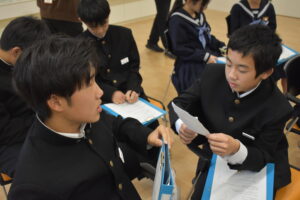1年生 いのちの教育 2025年11月20日 に 管理者 が投稿 11月20日(木) 今日は「NPO法人ハッピーウーマンプロジェクト」の方をお呼びして、いのちの教育を行いました。からだや性に関する正しい情報を得る方法や困ったときの相談先について知ることができました。