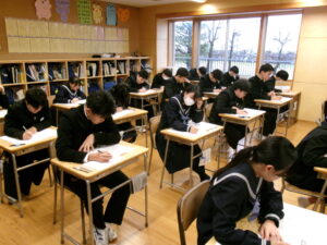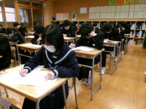 第4回実力テストが始まり、今日は、社会を実施しました。期末テスト後の学習の成果を発揮するために精一杯取り組みました。