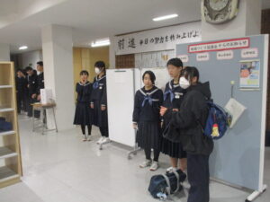 挨拶運動 2025年12月5日 に 管理者 が投稿 12月5日(金) 3週間にわたり、挨拶運動を行ってきました。今日は、応援団と執行部が担当で、生徒玄関で登校する生徒に挨拶をしました。今日で挨拶運動が終わりますが、今後も明るい挨拶が飛び交う井波中になってほしいです。