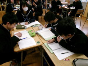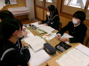 3年生 国語科 グループで課題を決めて話し合おう 2025年12月10日 に 管理者 が投稿 12月10日(水) 論説文を読み、自分たちで課題を設定して話し合い活動を行っています。自分の知識や経験と結び付けながら文の内容について考えています。
