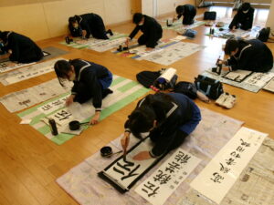 書初練習を行いました。お手本をよく見て集中して取り組んでいます。