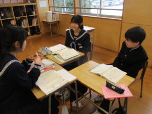 1年生 国語科 課題や展開を捉えて話し合おう 2026年1月13日 に 管理者 が投稿 1月13日(火) 自分たちで課題を決めて話合い活動を行いました。互いの意見を関わらせることを意識し、進行役を交代しながら取り組みました。