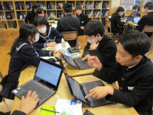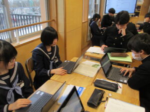 3年生 国語科 随筆 2026年1月14日 に 管理者 が投稿 1月14日(水) 随筆を読んで、作品のテーマについて考える学習を行いました。グループごとに考えをまとめ、タブレット端末に入力して共有しました。