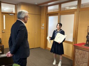 受賞報告 2026年1月19日 に 管理者 が投稿 1月19日(月) 3年生の生徒が富山県中学校スキー選手権大会の報告をしました。 アルペン競技 大回転1位 回転1位 三年連続二冠を達成しました。全中大会に向けて頑張ってください。
