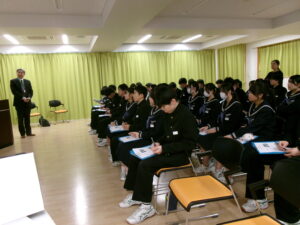 2年生 進路学習 2026年1月23日 に 管理者 が投稿 1月22日(木) 2年生は、砺波工業高等学校、南砺平高等学校の先生をお招きして進路学習を行いました。 2つの学校の特色や学習内容、部活動、高校卒業後の進路先等について教えていただきました。今後の進路選択に生かしていきたいです。