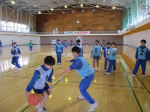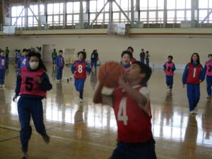 1年生 体育「バスケットボール」 2026年1月26日 に 管理者 が投稿 1月23日(金) 1年生の体育ではバスケットボールに取り組んでいます。どのチームも白熱した試合が展開しています。寒さに負けずに頑張ります。