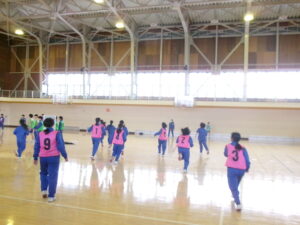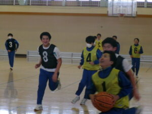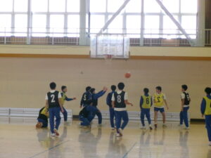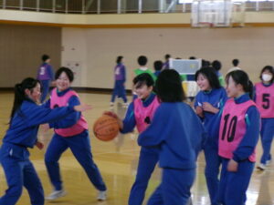 学年議会が企画してバスケットボールをしました。保健体育で身に付けた技術を生かして、試合を楽しみました。