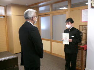 受賞報告 2026年2月16日 に 管理者 が投稿 2月16日(月) 2月14日(土)親切善行表彰式に参加した生徒の受賞報告がありました。木遣り町流しやよいやさ祭り等の地域行事に積極的に参加したことが認められ、表彰されました。