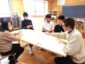 若草学級の英語では、ALTの先生と電子機器を使ったり、カードを使ったりして、楽しんで学習に取り組んでいます。