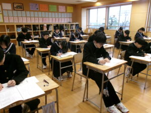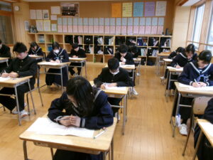 3学期末考査 2026年2月25日 に 管理者 が投稿 2月25日(水) 今日から2日間、1、2年生が3学期末考査に取り組んでいます。1年間の集大成のテストとして、勉強してきた成果を十分に発揮し、目標を達成してほしいです。