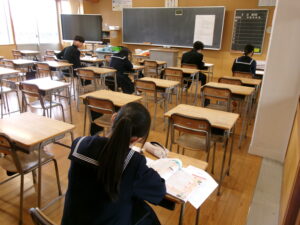 3年生 県立高等学校一般入試 2026年3月5日 に 管理者 が投稿 3月5日(木) 県立高等学校一般入試一日目です。受検する生徒は二日間、学習の成果を発揮してください。本日受検のない生徒も教室で学習を進めたり、卒業に向けた活動を行ったりしました。