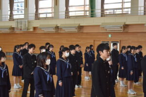 修了式を行いました。一年間の振り返りを行い、互いの成長を認め合いました。次年度に向けてよりよい春休みとなるよう期待しています。
