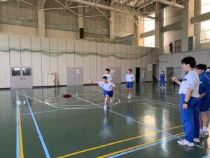 宿泊学習2日目は、医王山スポーツセンターでニュースポーツに取り組みました。午後からは金沢地方裁判所を訪問します。